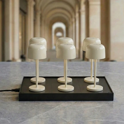 Lucande LED rechargeable table lamp Quill, beige, CCT, dimmable