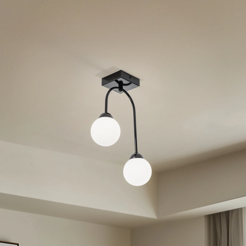 The Bandi ceiling light combines modern design with high-quality materials such as glass and steel to provide a stylish lighting solution. The combination of black and opal finishes adds an elegant touch to any room, while the 2-bulb design ensures even light distribution. This light is ideal for living and dining rooms, hallways and bedrooms, and blends seamlessly into various interior styles.