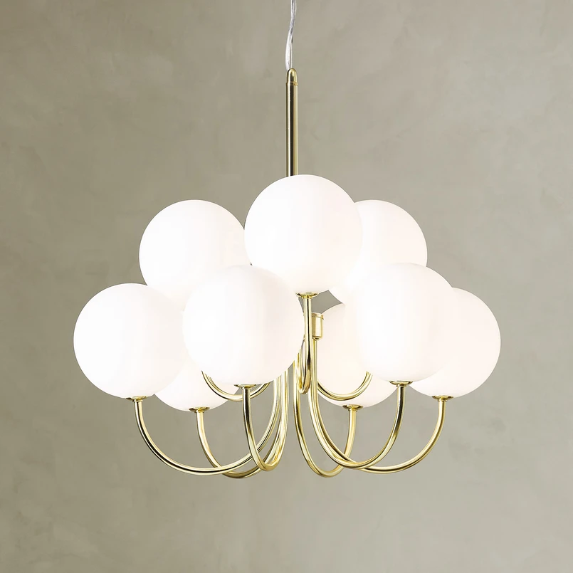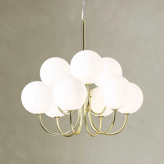 Bianco pendant light, 9-bulb, gold/white, glass, G9