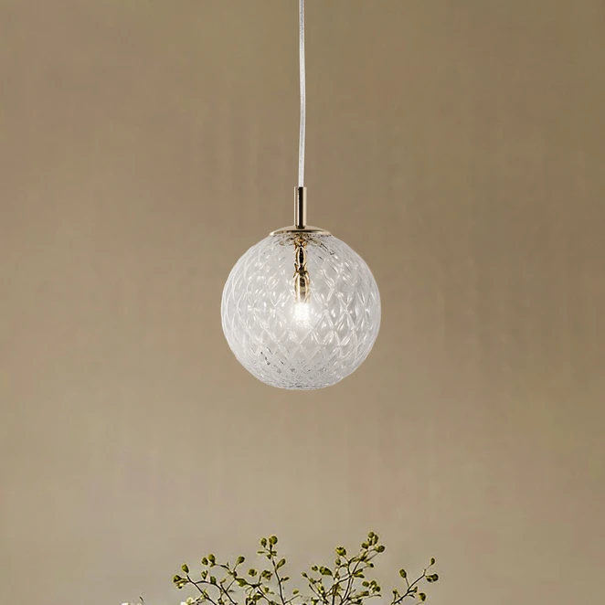 The Cadix glass pendant light combines timeless elegance with functional versatility. Made from high-quality steel and clear glass, this 1-bulb masterpiece fits seamlessly into living and dining rooms. The combination of clear and golden accents gives any room a luxurious atmosphere that is both calming and inspiring.