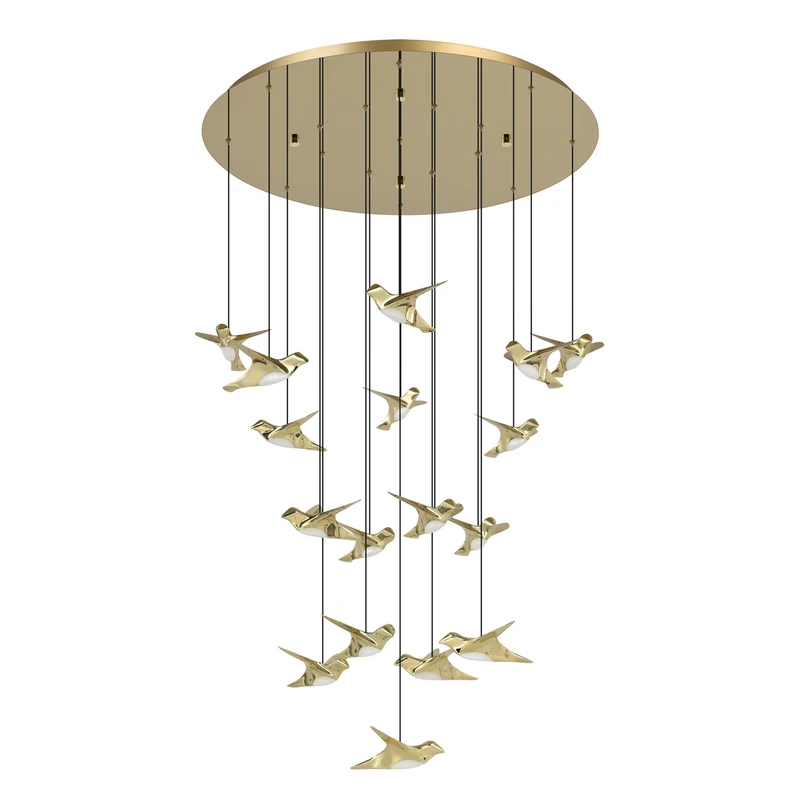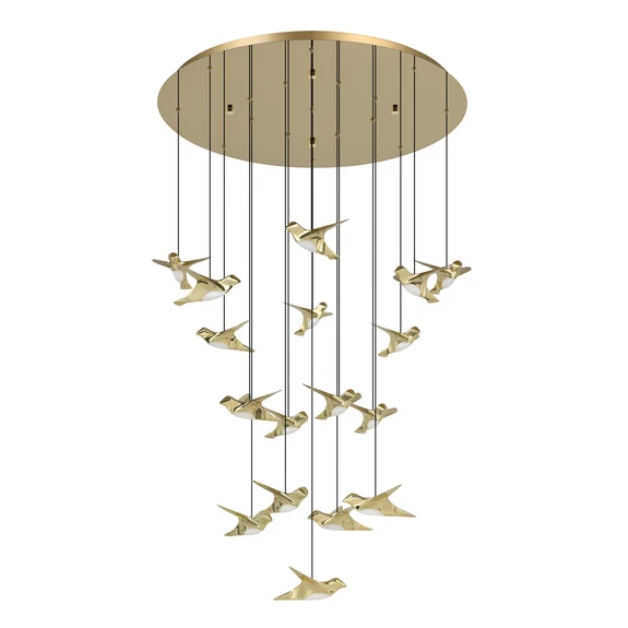 Paratebueno LED hanging light with 17 birds and warm white LEDs