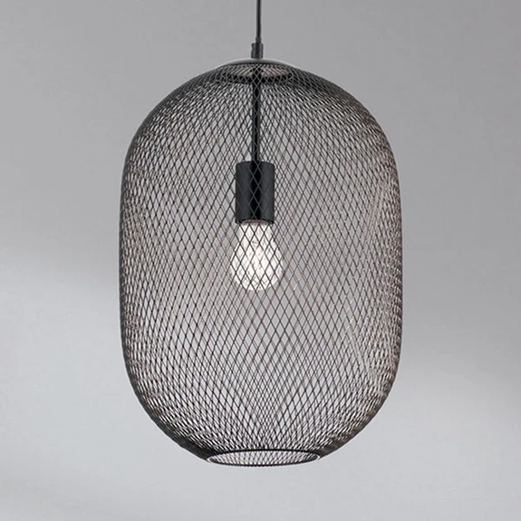 The bulbous pendant Georgina is covered with a fine metal mesh. This allows a free view of the light source. The black colour and the rounded shape appear simple but modern at the same time. Therefore, it fits perfectly with light walls, which accentuates the cage look even more. The elongated cage shade not only allows Georgina to use bulb-shaped lamps, but elongated and bulb-shaped lamps are also very suitable here. Especially lamps in filament optics are especially recommended in this case and provide an idyllic atmosphere.
