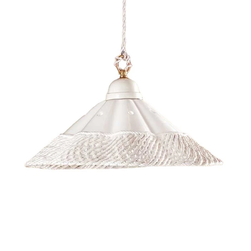 The pendant lamp GONNELLAFor a romantic room, this pendant lamp is a very beautiful lighting element. The lampshade made of high-quality ceramic has an appealing pattern. It is reminiscent of lace skirts and thus creates a romantic ambience. The material is easy to maintain. Multiple usesThe lamp is designed for the country house style and thus fits into many rooms. It is an ideal companion for dining and kitchen tables. This lamp can also be used to great effect in the catering trade. Inns and romantic restaurants are ideal here. Especially at long tables, several of these luminaires make a good impression.