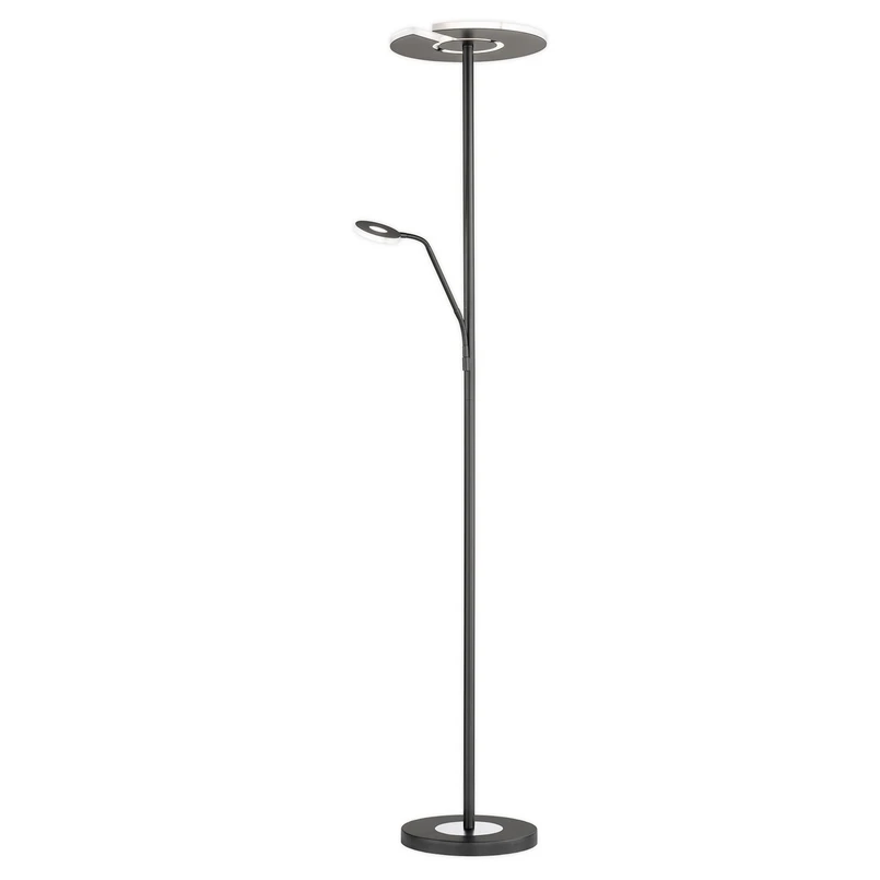 Dent LED uplighter: integrated CCT function for customised lighting moods The Dent LED uplighter with reading arm is an enrichment for any room. With its modern design in elegant black, it blends seamlessly into the furnishings of the living room, study or dining room. The integrated CCT function allows the colour temperature of the light to be adjusted as required - from warm tones that create a cosy atmosphere to cooler shades that promote concentration and productivity. The integrated LED light source is characterised by its energy efficiency and offers a long-lasting lighting solution. The uplighter is equipped with a dimmer that enables the brightness of the light to be precisely controlled, allowing the lighting conditions to be optimally adapted to the situation at hand. The additional reading arm of the Dent uplighter provides targeted light for moments when concentrated work or relaxed reading is required. The combination of main light source and reading lamp makes this uplighter a multifunctional lighting element that fulfils both practical and aesthetic requirements.