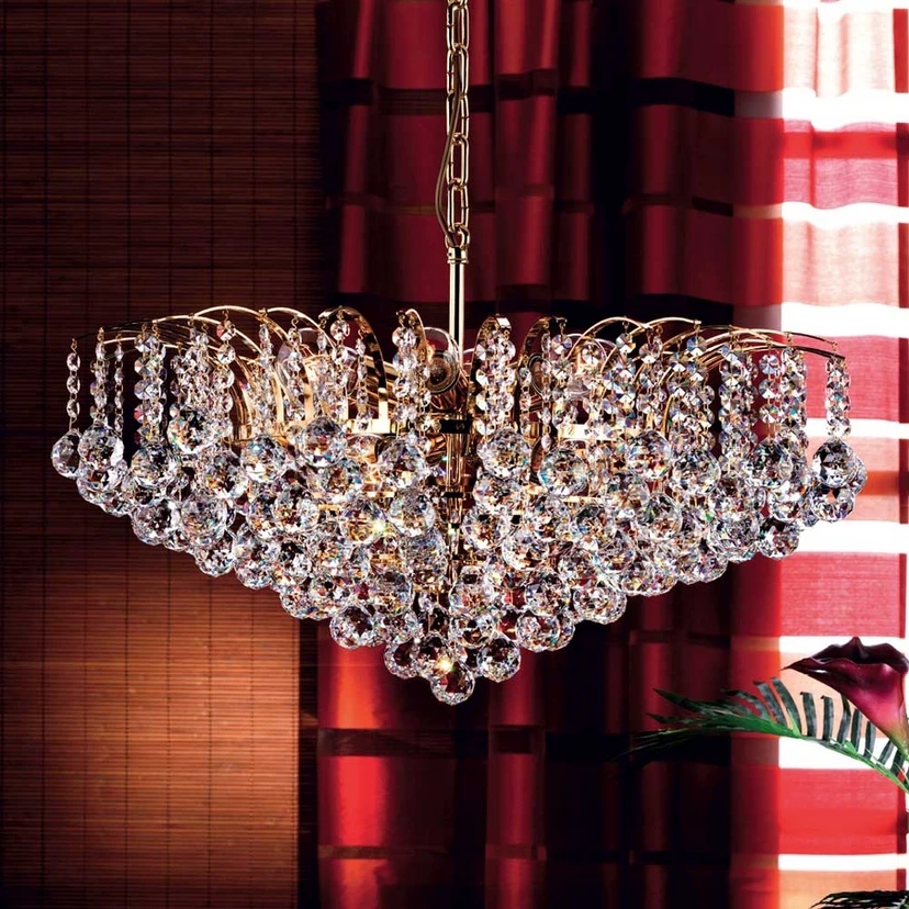 Lennarda hanging light with 24 carat gold-plated metal and clear crystal balls