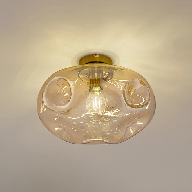 The Lelia ceiling light is perfect for a living room or dining room. Designed by Ingo Thiele, this light is characterised by its high-quality glass and iron construction. The amber tint of the glass creates a warm and inviting atmosphere in any room, whether in the dining room, living room or hallway.