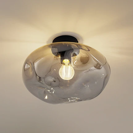 Lindby Lelia ceiling light, smoke grey, glass, Ø 35 cm