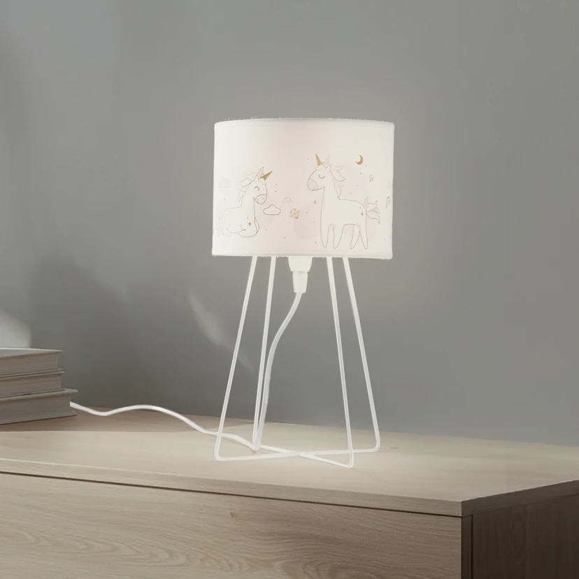 Mila table lamp, fabric, unicorns, E14, height 32.5 cm