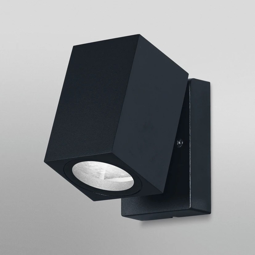 Outdoor Endura Classic Cube with GU10 socket. Product features: Die-cast aluminium housing. Adjustable head. Product advantages: High flexibility in the choice of bulb thanks to GU10 socket. Quick and easy installation. High-quality materials. Areas of application: Entrance lighting. Terraces, balconies. Illumination of facades. Technical features: Complete mounting and connection accessories included. Bulb not included. Safety instructions: All electrical connections must be carried out by qualified personnel only. Caution, risk of electric shock. Product of protection class I. All electrically conductive, metallic housing parts that may become live during operation or maintenance in the event of a fault must be connected to the protective earth throughout.