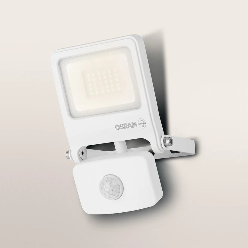 OSRAM ENDURA FLOOD outdoor spotlight, white, sensor 20 W 830 IP44
