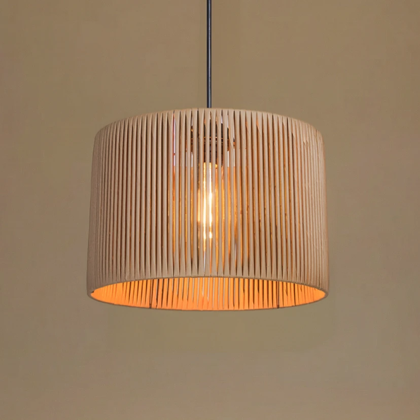 The Roya Cylinder pendant light combines modern design with the natural aesthetics of paper and metal. This light is available in an attractive beige and black colour scheme and blends seamlessly into various living environments such as living rooms and dining rooms. The use of paper gives the light a light and airy appearance, while the metal accents provide stability and a touch of elegance.